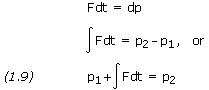 The integral is a vector known as the linear impulse, or simply the impulse, of the force F during the time interval considered. The equation expresses that, when a particle is acted upon by a force F during a given time interval, the final momentum p2 of the particle may be obtained by adding its initial momentum p1 and the impulse of the force F during the interval of time.